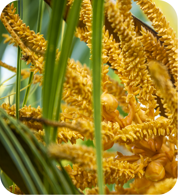 Nuestro sistema de siembra es en tresbolillo (8 x 8 Mts entre plantas), donde tres plantas forman un triángulo equilátero, permitiendo que cada planta reciba las horas de luz requeridas para su óptimo crecimiento.